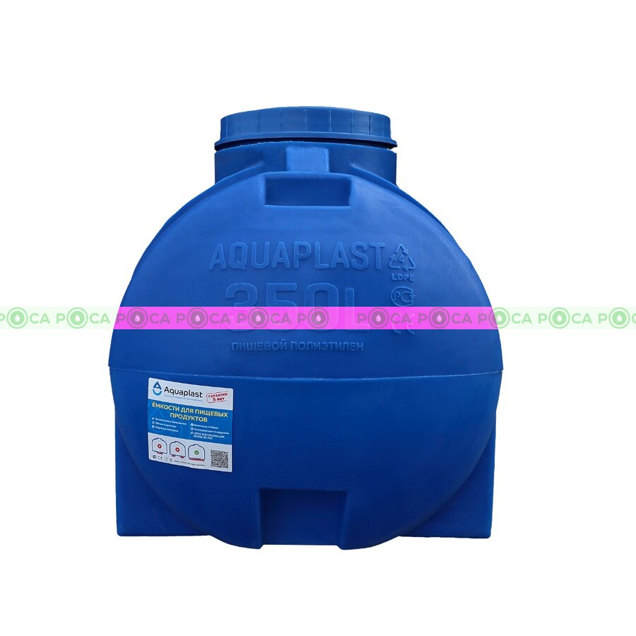 Емкость 350 литров цилиндрическая горизонтальная (синяя) АКВАПЛАСТ